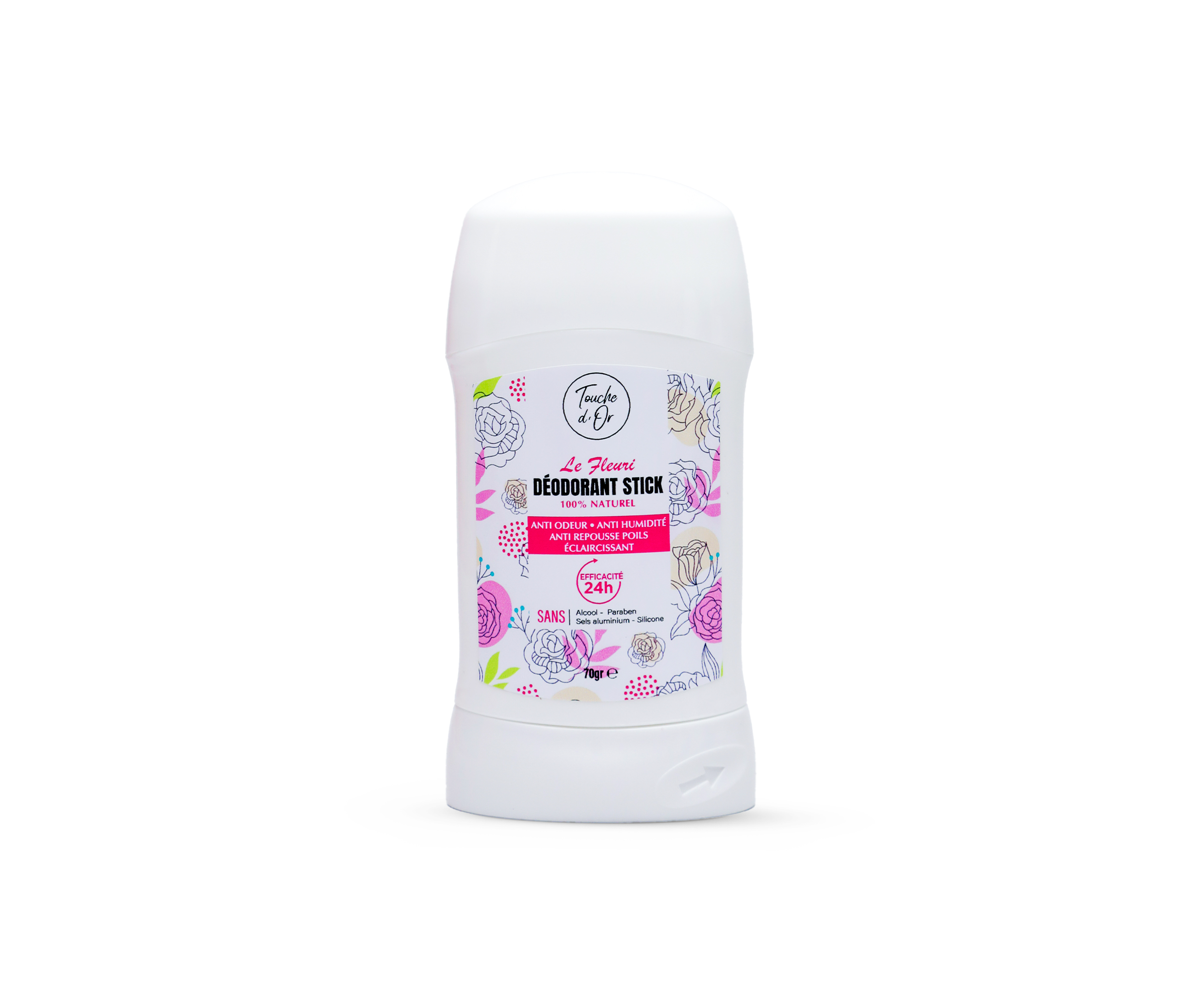 Pensé pour les peaux sensibles, Le Fleuri associe une base nourrissante de beurres et d’huiles végétales à des actifs déodorants d’origine naturelle. Le bicarbonate neutralise les odeurs, l’amidon de maïs absorbe l’excès d’humidité et laisse un toucher sec, tandis que la palmarosa apporte une fraîcheur florale tout au long de la journée.