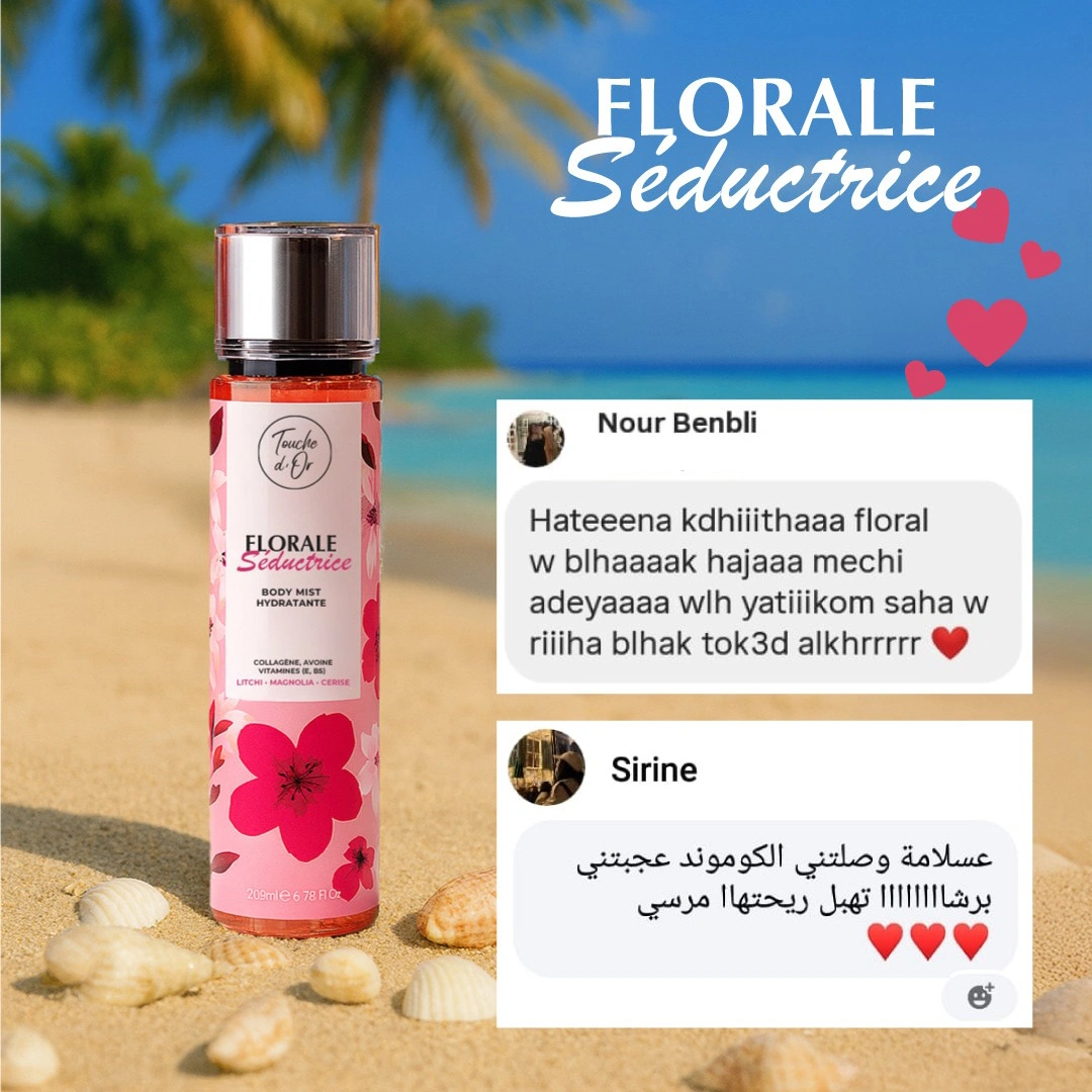 Plongez dans un monde de douceur avec la brume Florale Séductrice. Enrichie en collagène, avoine et vitamines (E, B5), elle hydrate délicatement la peau, la laisse souple et subtilement parfumée d’un sillage féminin et lumineux.